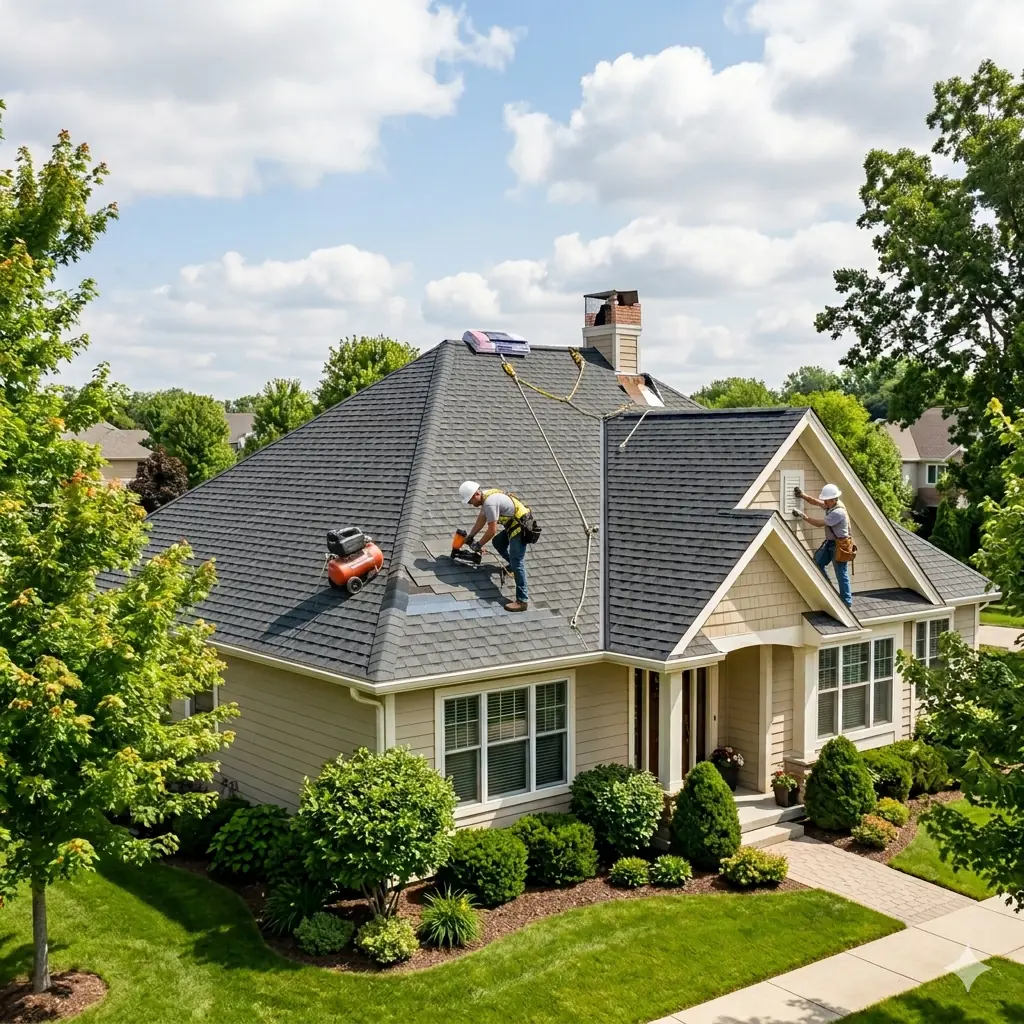 Professional residential and commercial roofing services including free roof inspections and estimates, new roof installation, full roof replacement, roof repairs, storm damage recovery, emergency tarping, gutter and flashing replacement, roof ventilation and insulation upgrades, and maintenance for flat and pitched roofs.